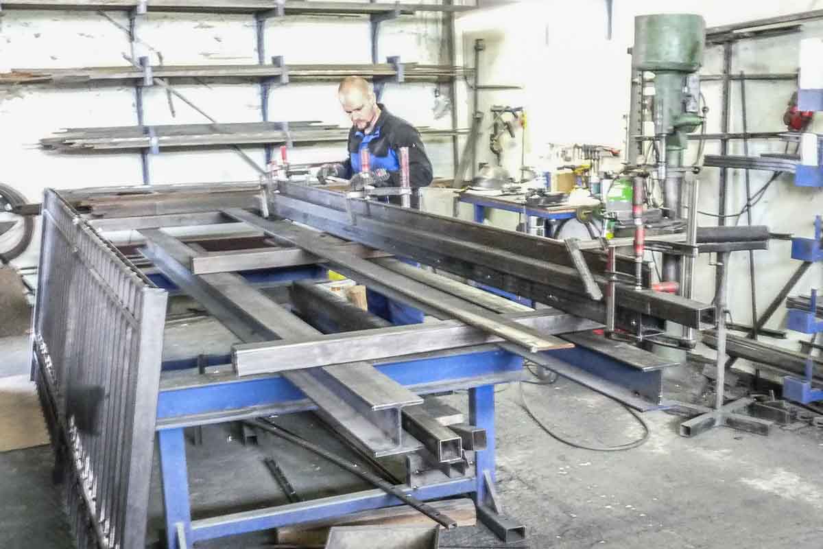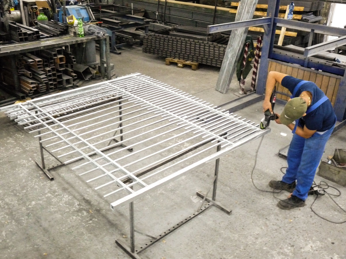 …erfolgt nach höchsten Qualitätsmaßstäben und direkt in unserem Unternehmen. Versierte Fachkräfte schweißen, formen, grundieren, beschichten das Material und bauen Ihre Zaun- und Toranlage sorgfältig und passgenau nach den Planungsvorgaben zusammen.