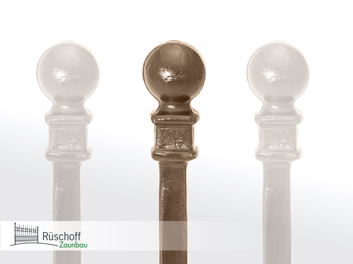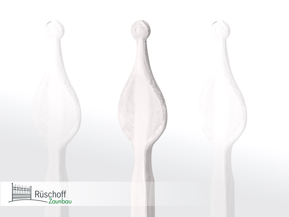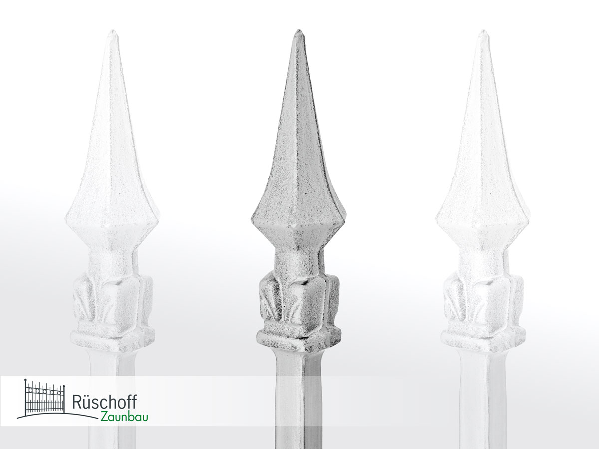 Oben auf: Für einen perfekten Abschluss und als aparte Hingucker auf Ihrem neuen Zaun können Sie sich aus unserem Spitzen-Sortiment bedienen. Ob die klassische französische Lilie oder die puristische Pyramide – ein gelungenes Topping rundet das Ensemble der Zaunelemente professionell ab.